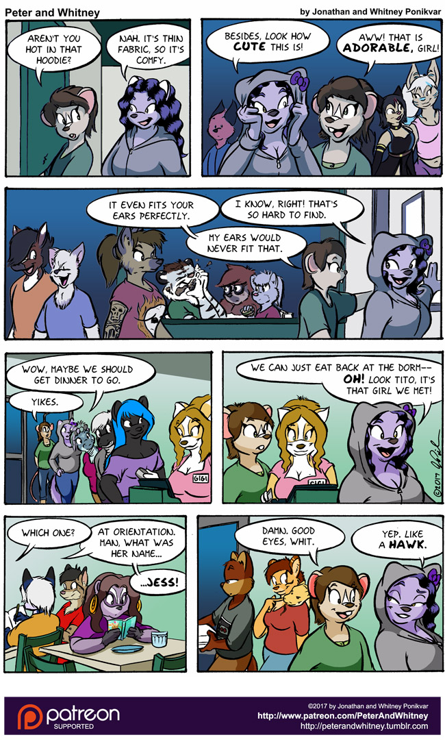 Alongside Whitney's corgi girl Gigi making a guest appearance as the Cafe SCAD worker taking their cards, many thanks to the following folks who offered up their characters for cameos on this page: